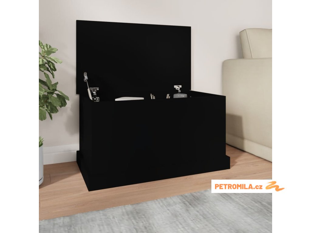 Úložný box černý 70 x 40 x 38 cm kompozitní dřevo