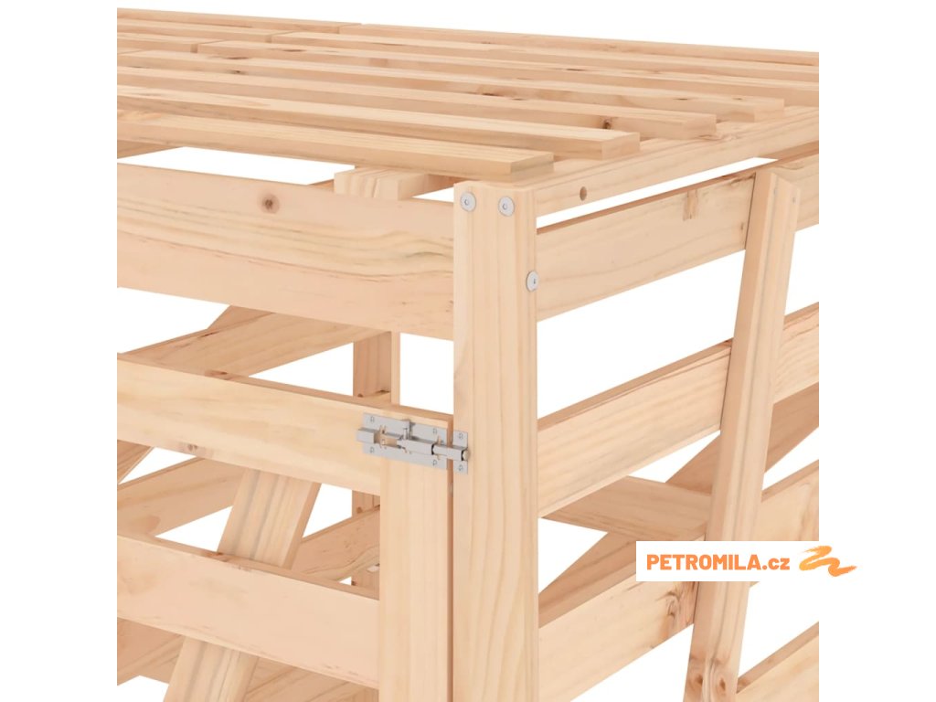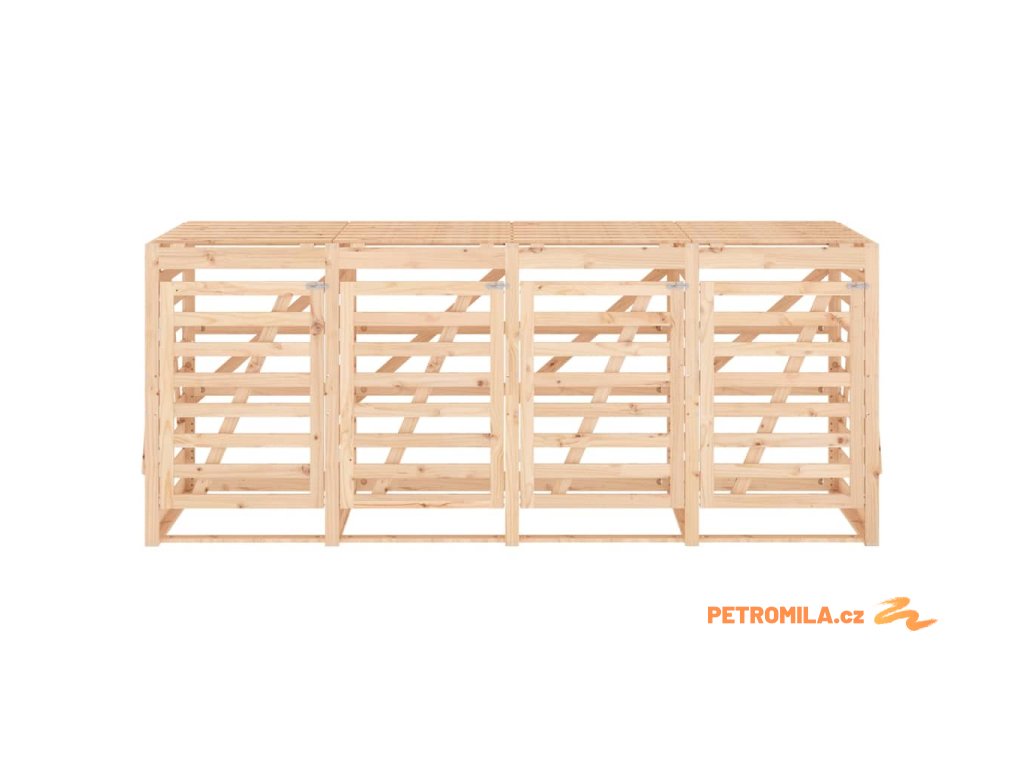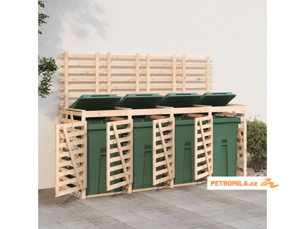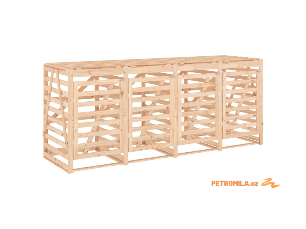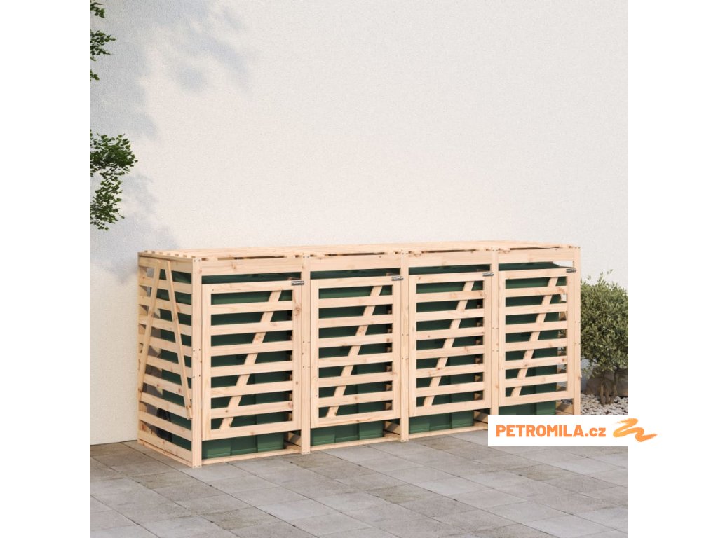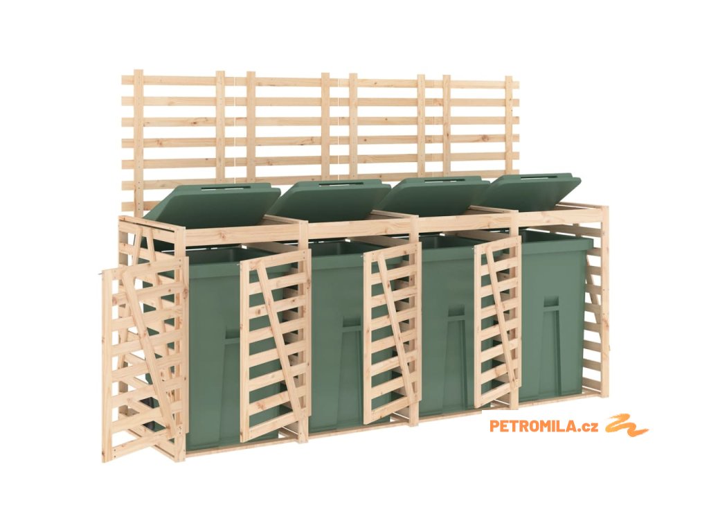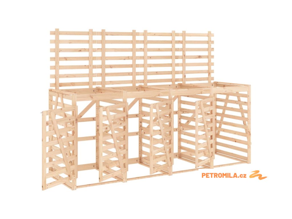 - Masivní borové dřevo: Zahradní box na popelnice je vyroben z masivního borového dřeva, které zajišťuje pevnost a odolnost. Masivní borové dřevo je krásný přírodní materiál. Borové dřevo má rovnou kresbu a obsahuje suky, které materiálu dodávají jeho charakteristický, rustikální vzhled.