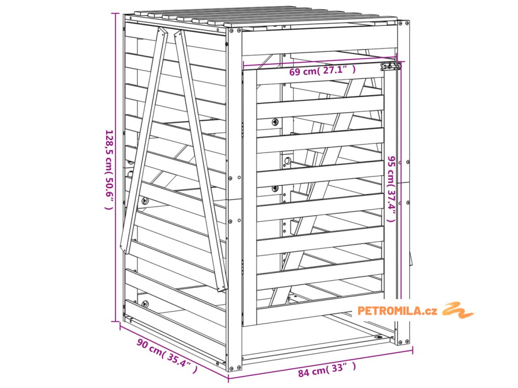 Úložný box na popelnici černý 84x90x128,5 cm masivní borovice