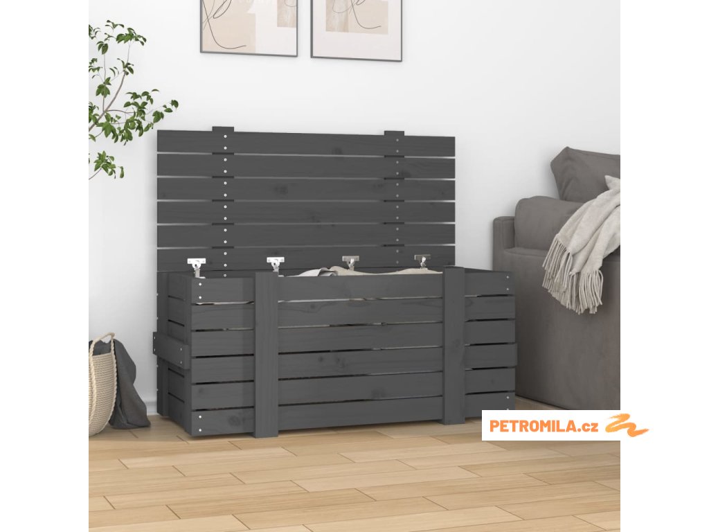 Úložný box šedý 91 x 40,5 x 42 cm masivní borové dřevo