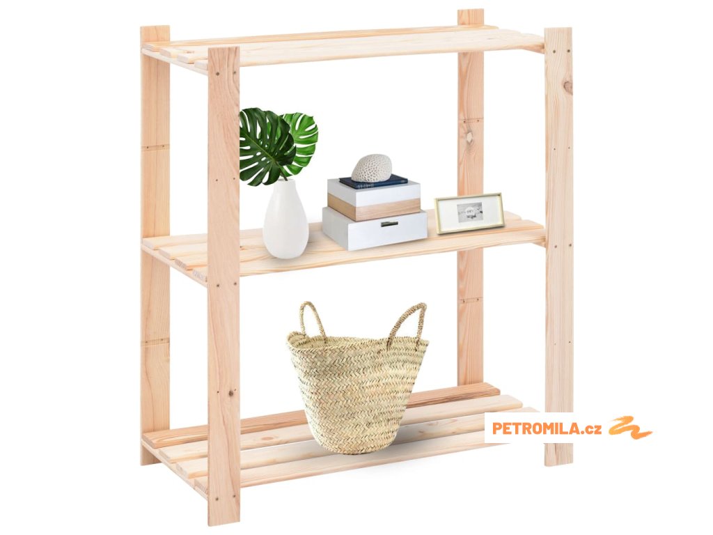 Úložný regál 3 police 80 x 38 x 90 cm masivní borovice 150 kg