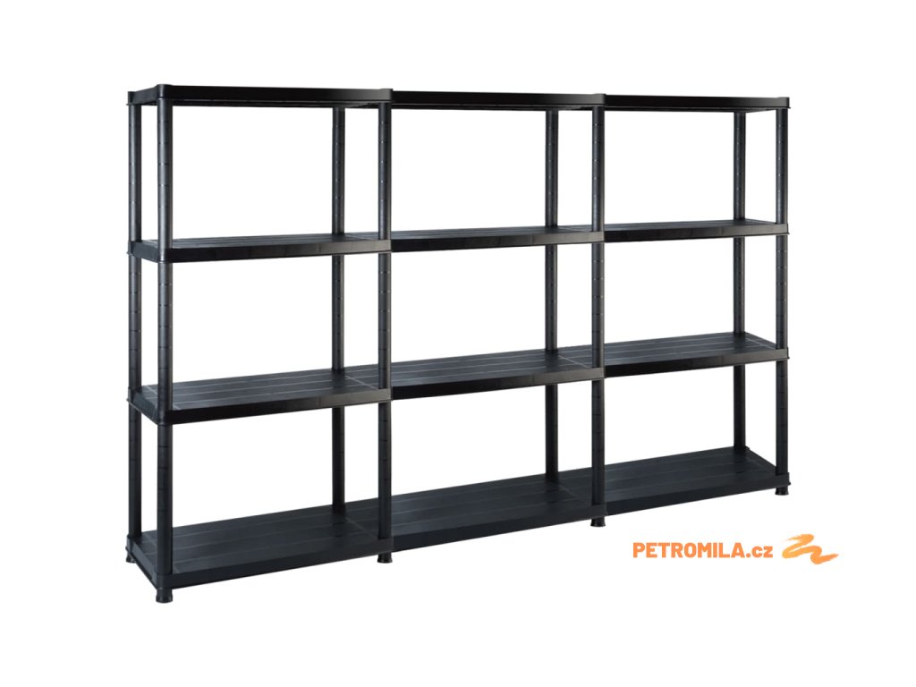 Úložný regál 4patrový černý 183 x 30,5 x 130 cm plast