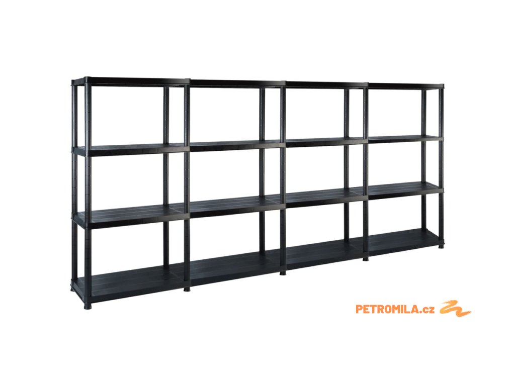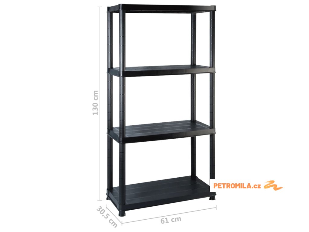 Úložný regál 4patrový černý 244 x 30,5 x 130 cm plast