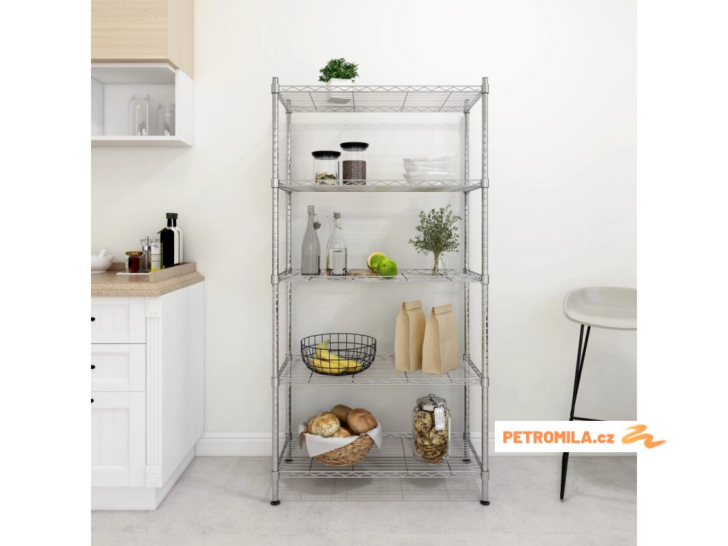 Úložný regál 5 polic 90 x 35 x 180 cm chromovaný 250 kg