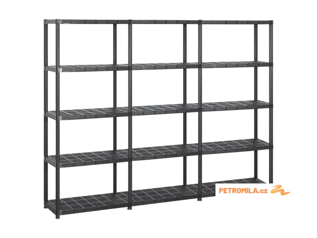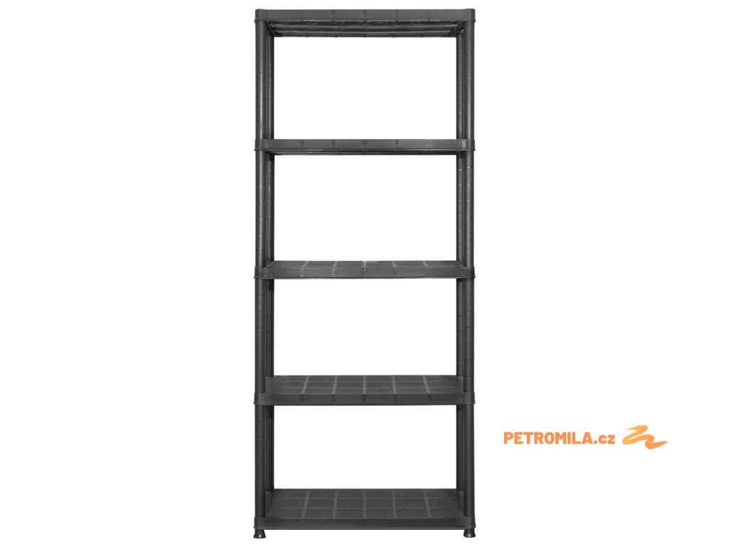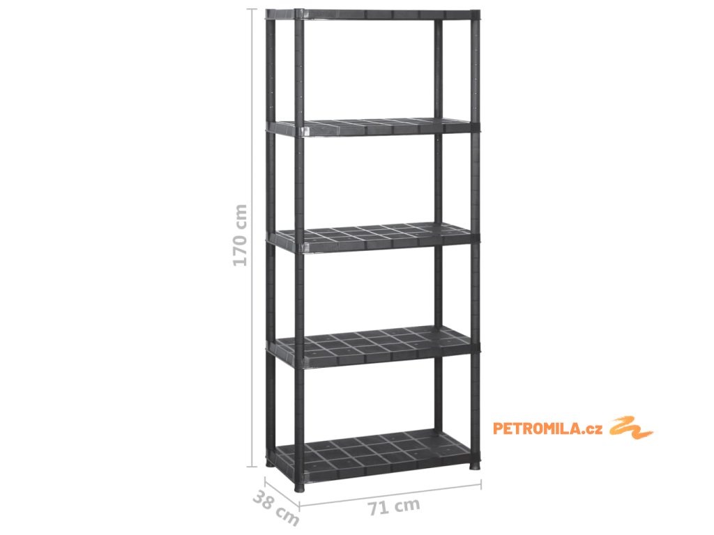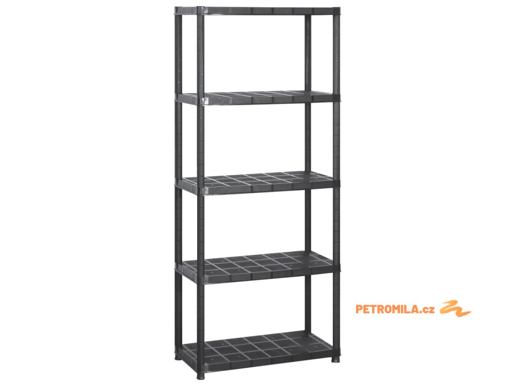 Úložný regál 5patrový černý 213 x 38 x 170 cm plast