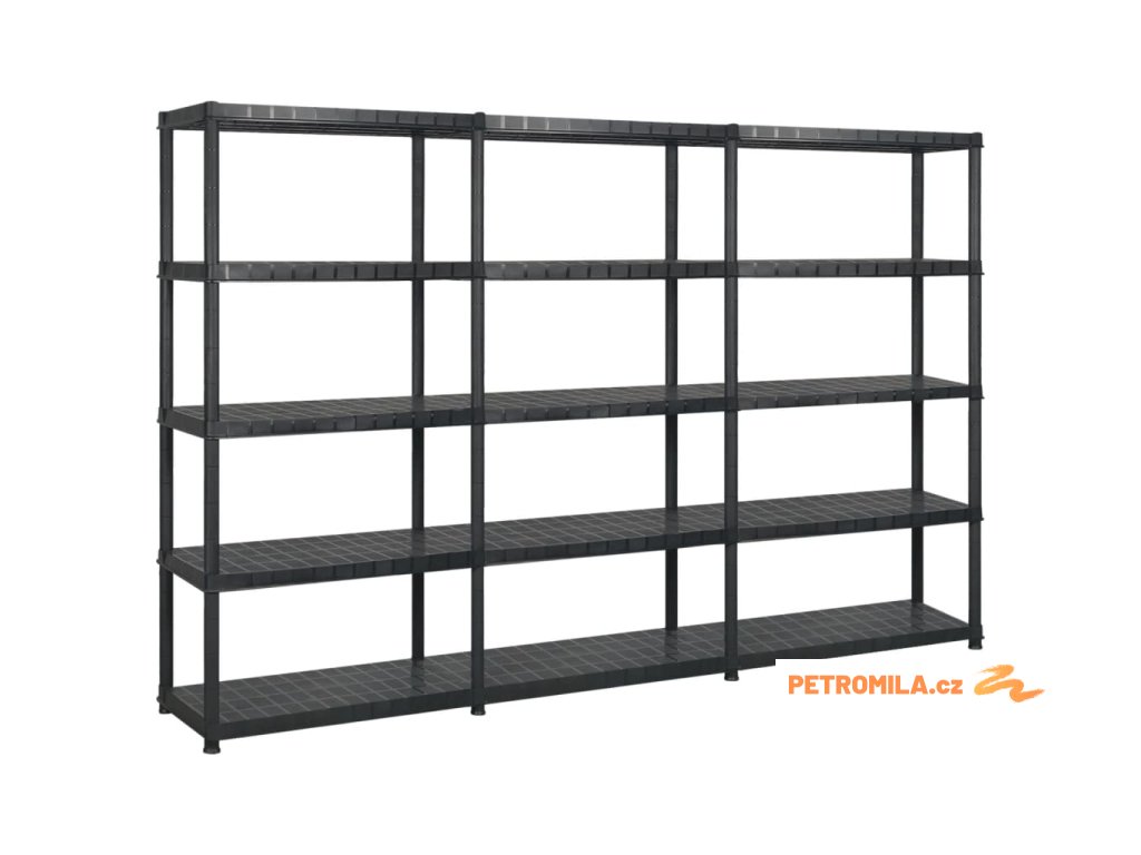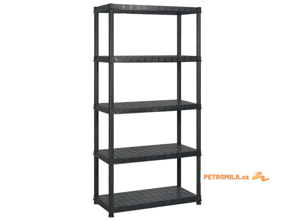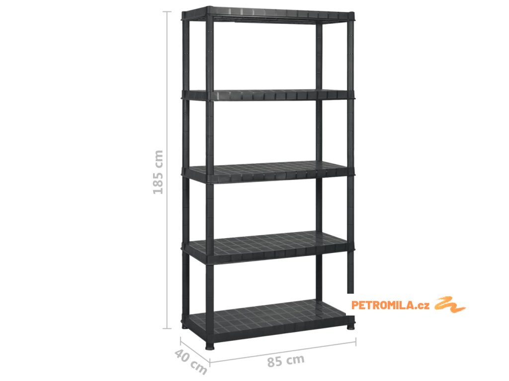 Úložný regál 5patrový černý 255 x 40 x 185 cm plast