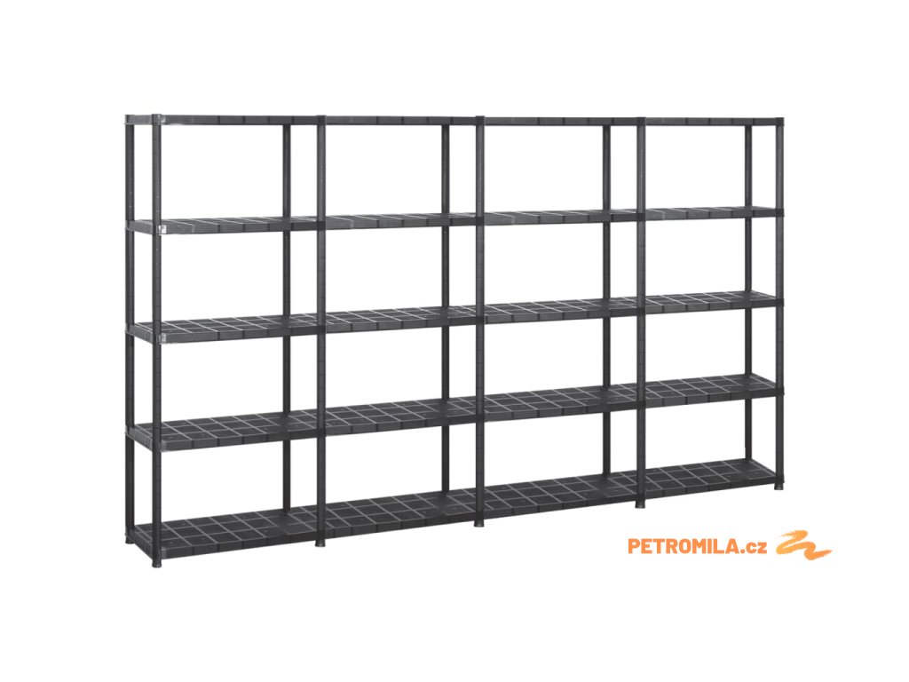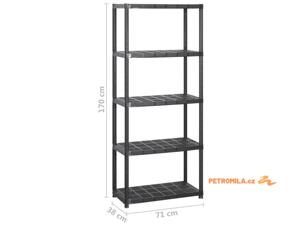 Úložný regál 5patrový černý 284 x 38 x 170 cm plast