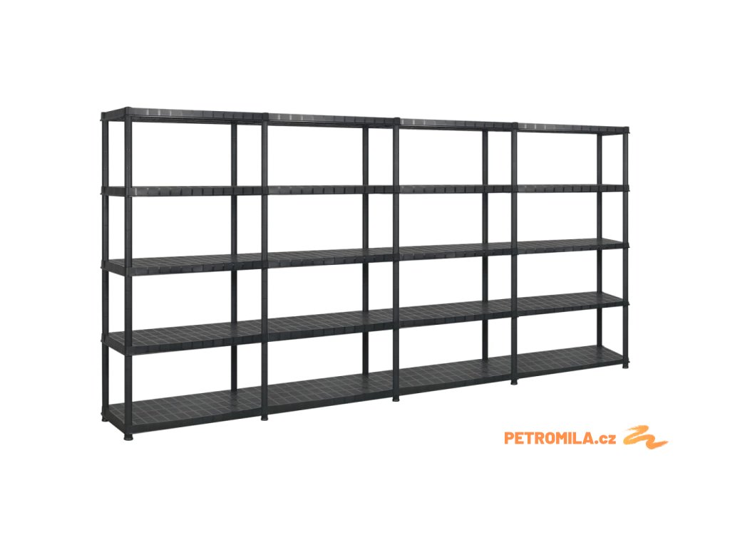 Úložný regál 5patrový černý 366 x 45,7 x 185 cm plast