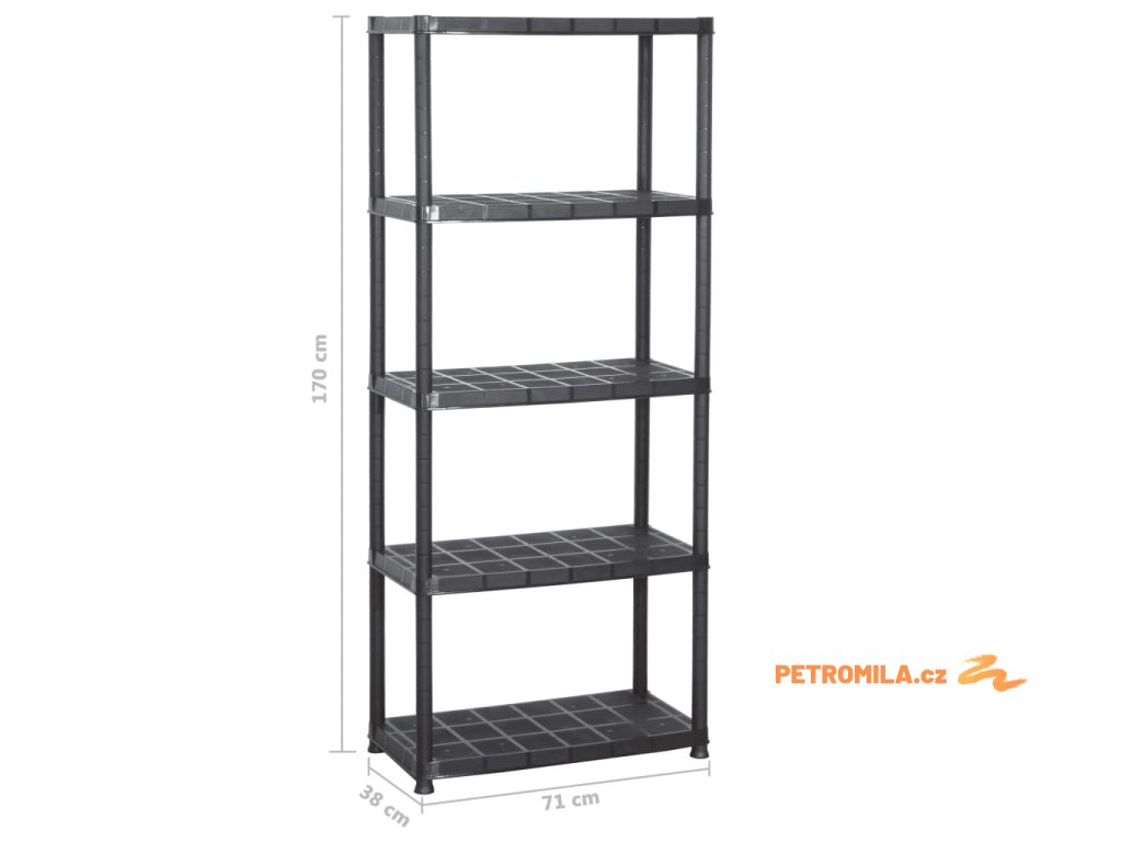 Úložný regál 5patrový černý 71 x 38 x 170 cm plast