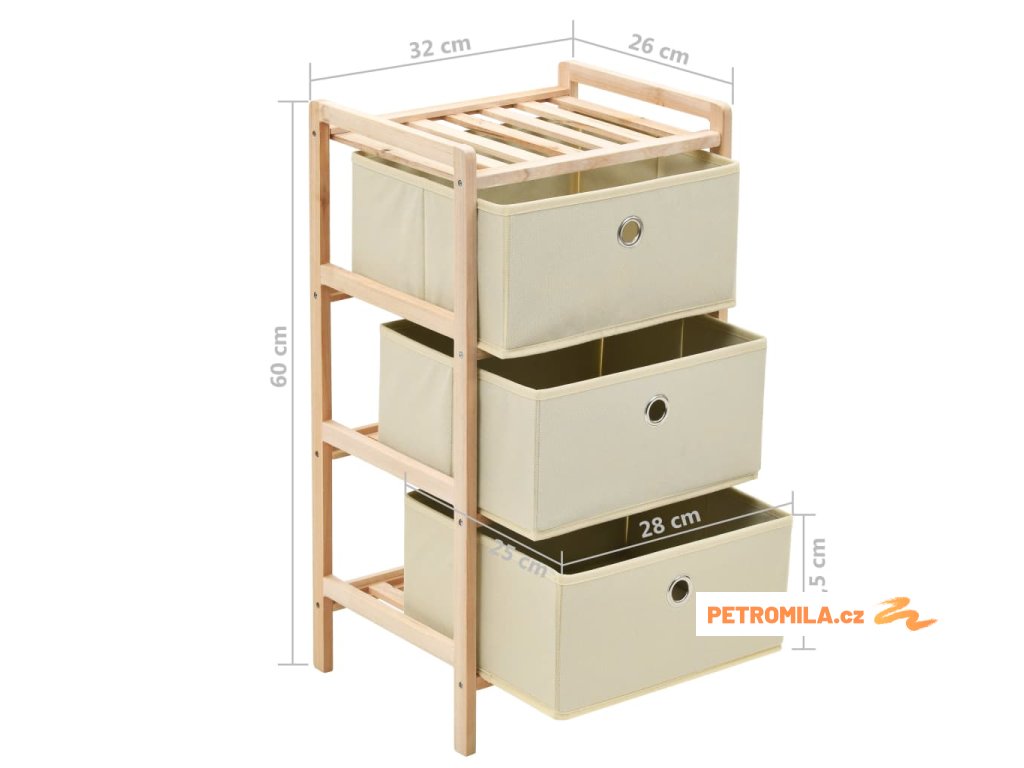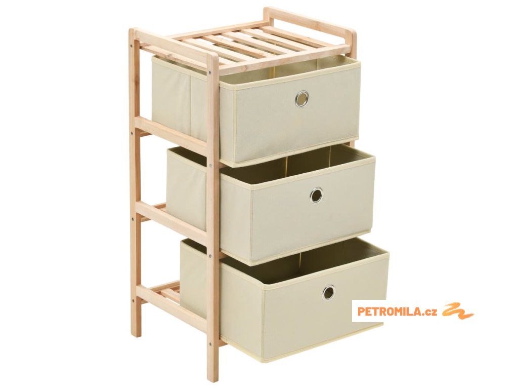 Úložný regál se 3 látkovými košíky cedrové dřevo béžový