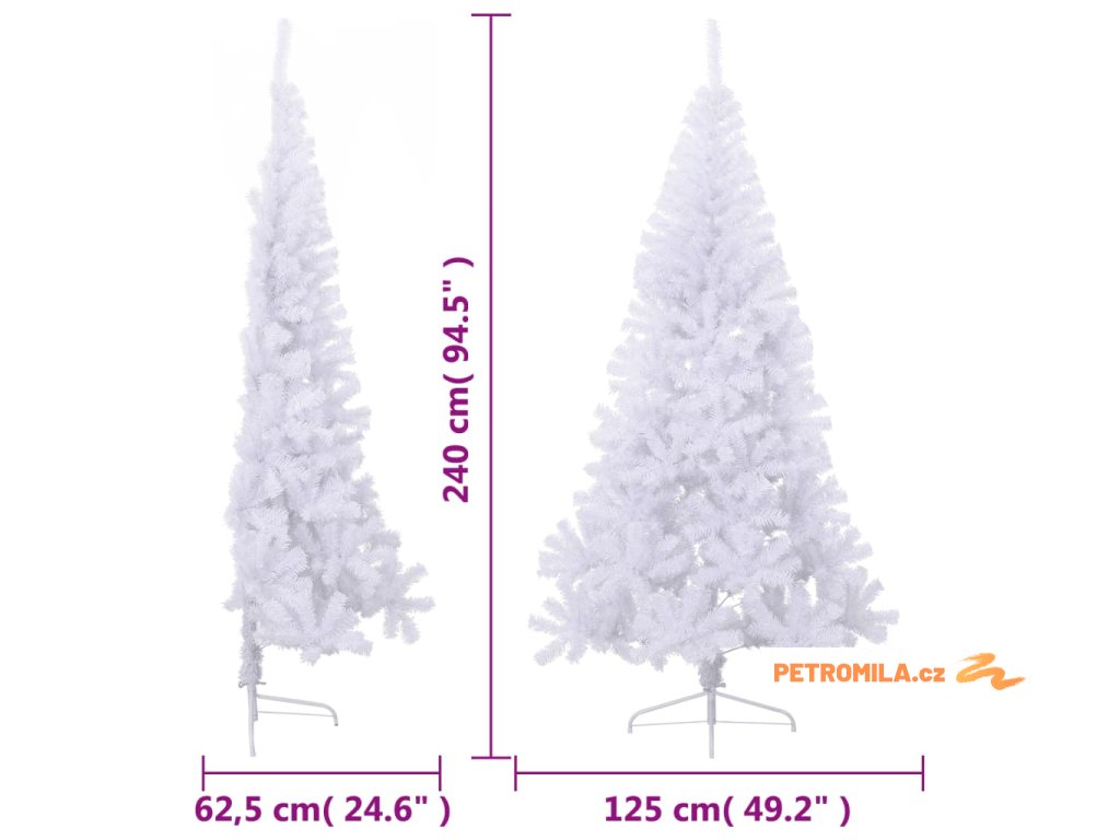 Umělý poloviční vánoční stromek se stojanem bílý 240 cm PVC