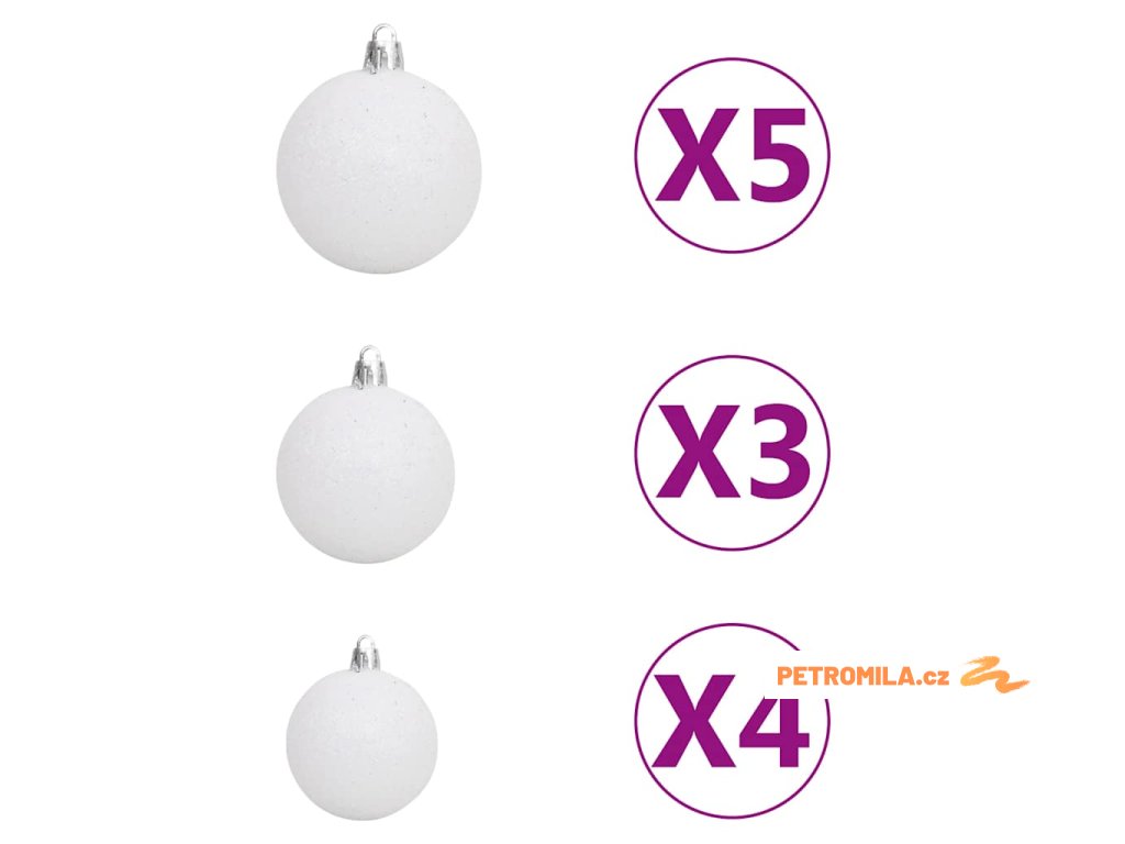 - Barva koulí: lesklá bílá, třpytivá bílá, lesklá šedá a třpytivá šedá