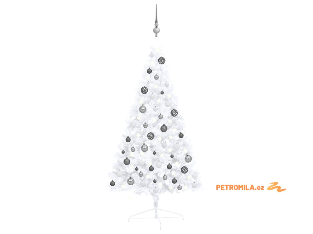 Umělý vánoční půl stromek s LED a sadou koulí bílý 120 cm
