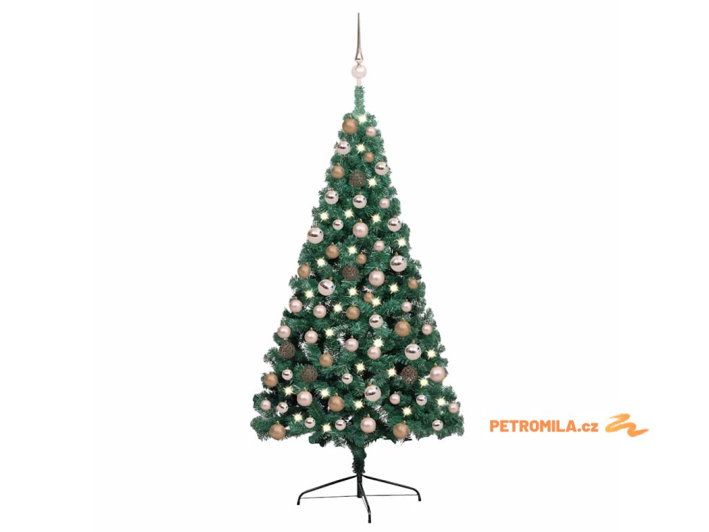 Umělý vánoční půl stromek s LED a sadou koulí zelený 120 cm