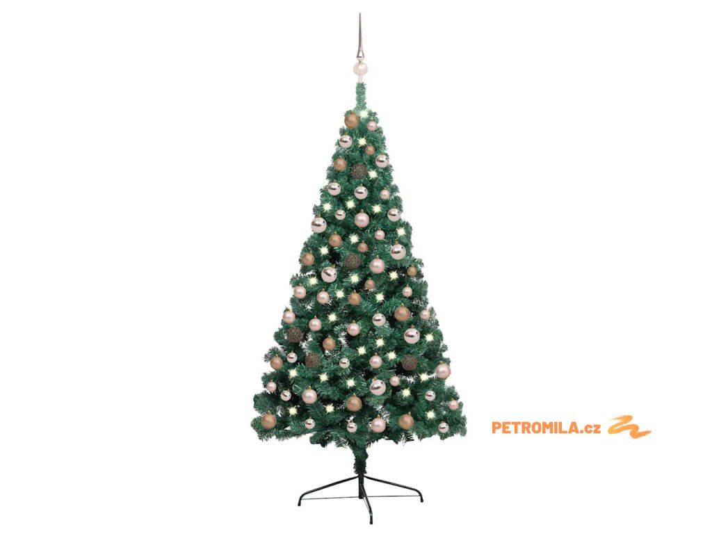 Umělý vánoční půl stromek s LED a sadou koulí zelený 150 cm