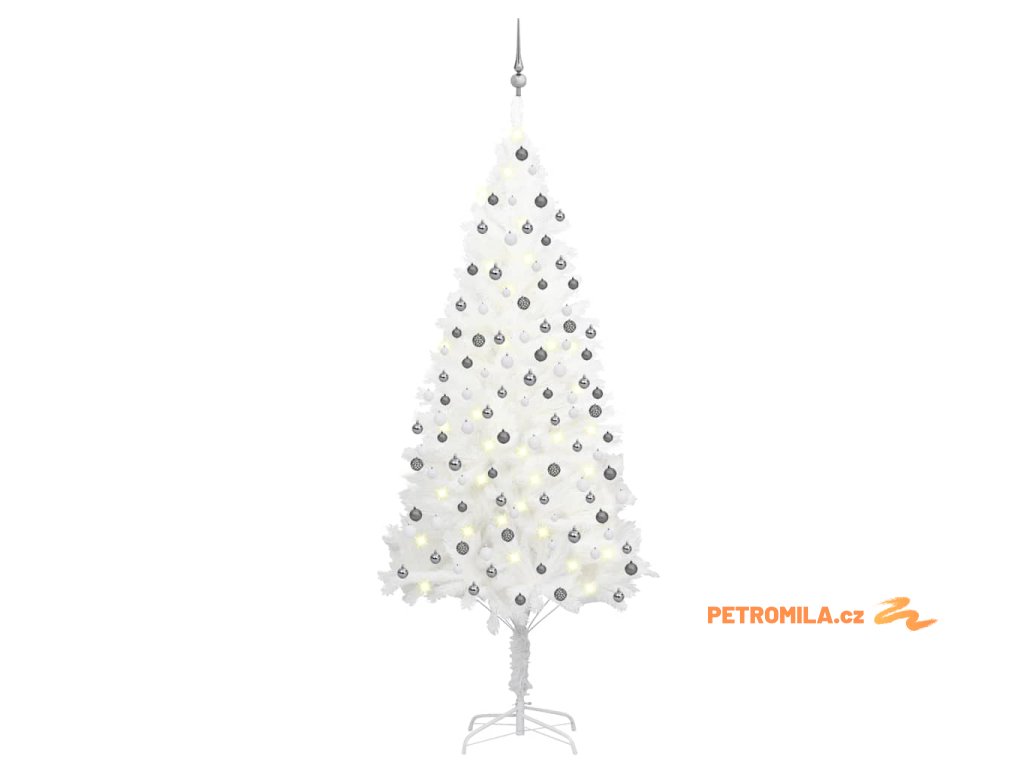 Umělý vánoční stromek s LED a sadou koulí bílý 210 cm