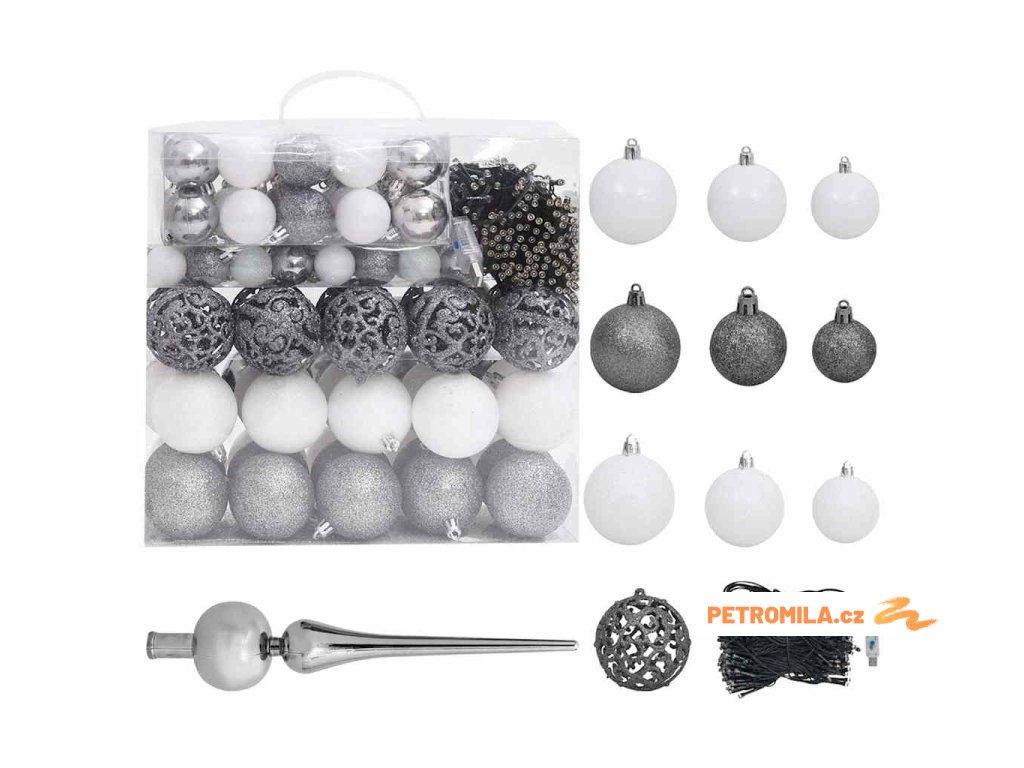 - Barva koulí: lesklá bílá, třpytivá bílá, lesklá šedá a třpytivá šedá