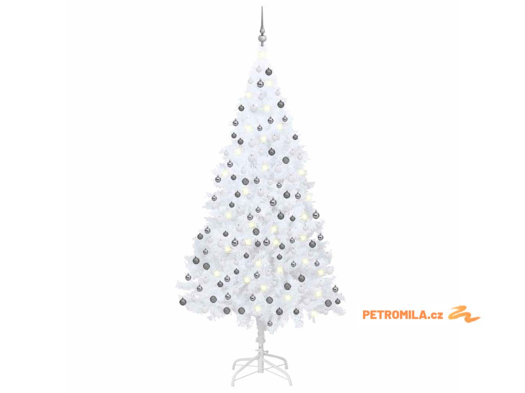 Umělý vánoční stromek s LED a sadou koulí bílý 240 cm