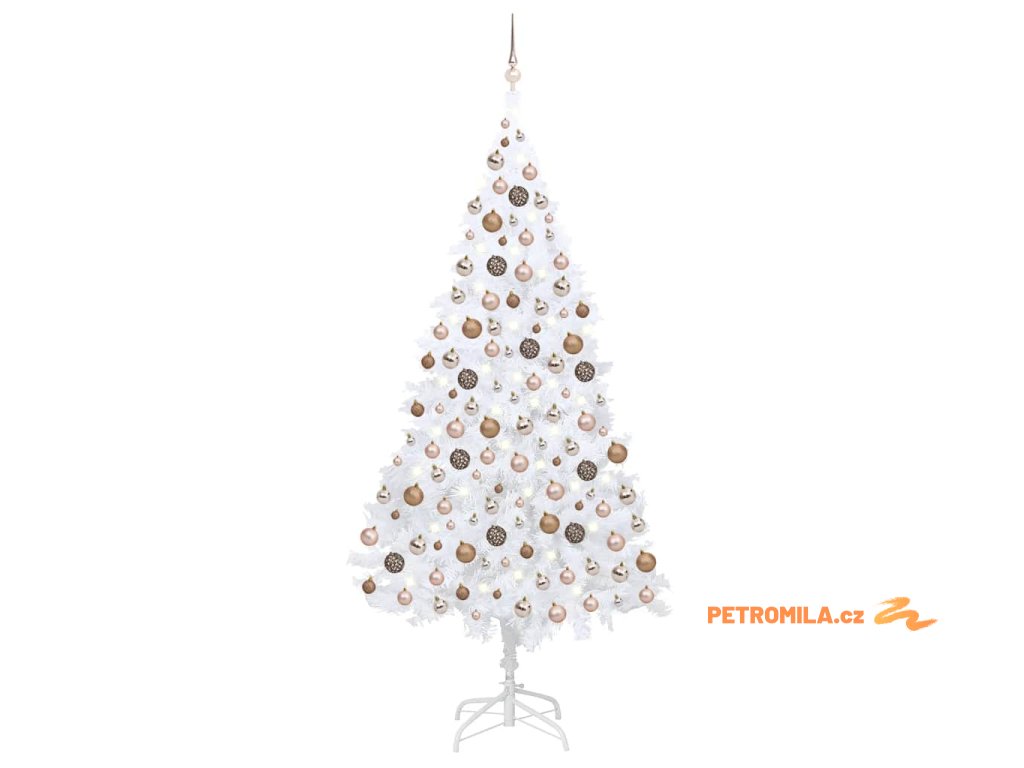 Umělý vánoční stromek s LED a sadou koulí bílý 240 cm