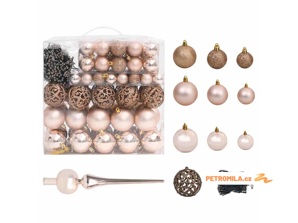 - Barva koulí: lesklé růžové zlato, matné růžové zlato a třpytivé růžové zlato
