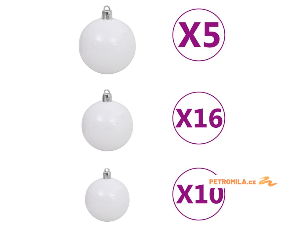 - Barva koulí: lesklá bílá, třpytivá bílá, lesklá šedá a třpytivá šedá