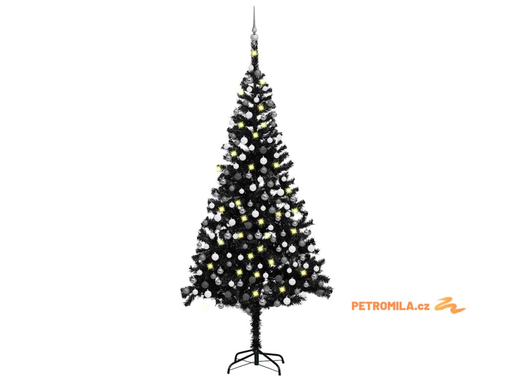 Umělý vánoční stromek s LED a sadou koulí černý 240 cm PVC
