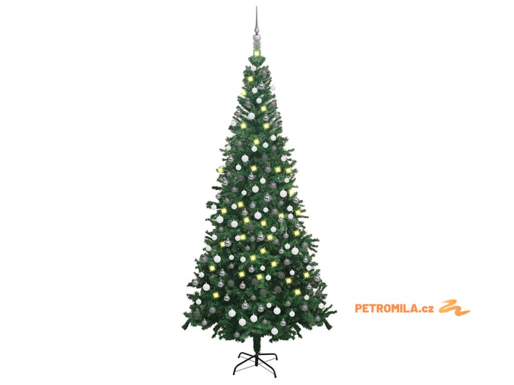 Umělý vánoční stromek s LED a sadou koulí L 240 cm zelený