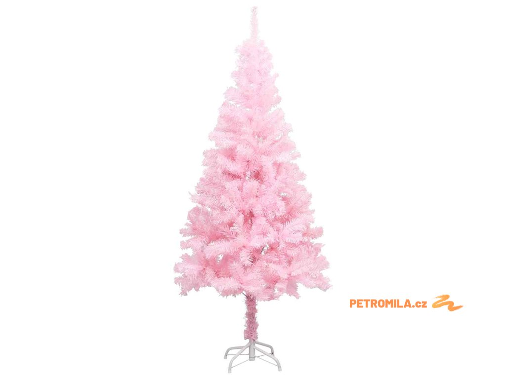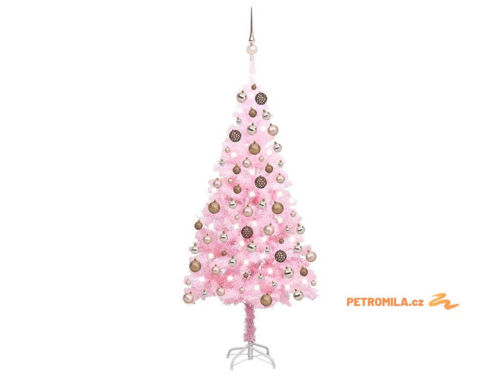 Umělý vánoční stromek s LED a sadou koulí růžový 120 cm PVC
