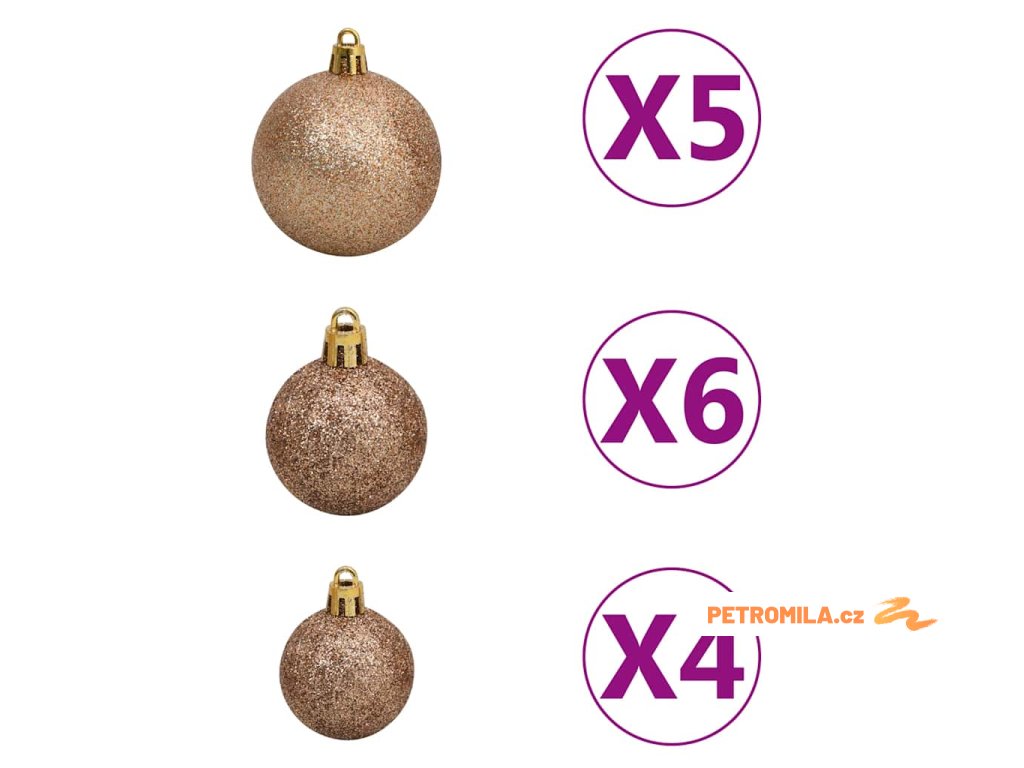 - Barva koulí: lesklé růžové zlato, matné růžové zlato a třpytivé růžové zlato