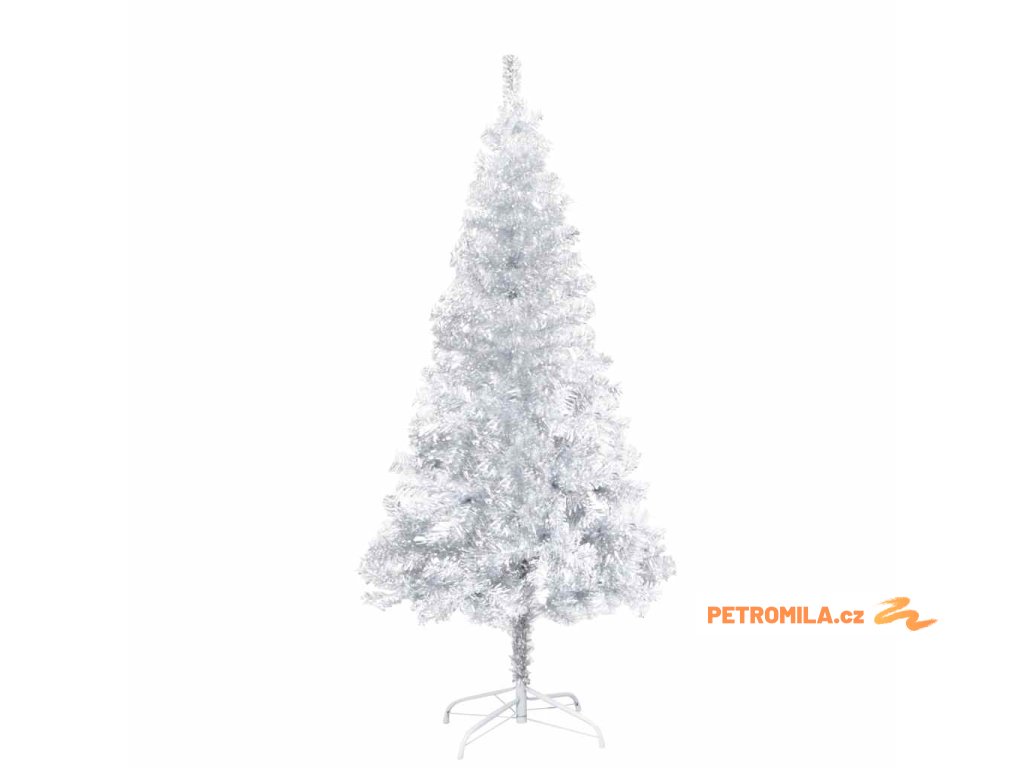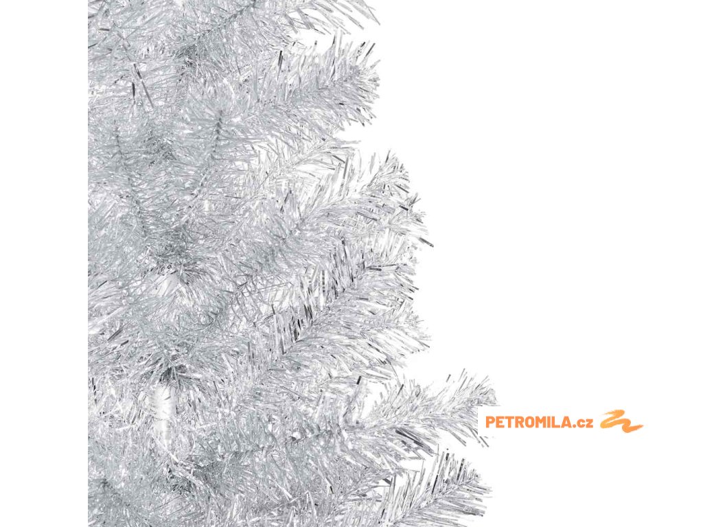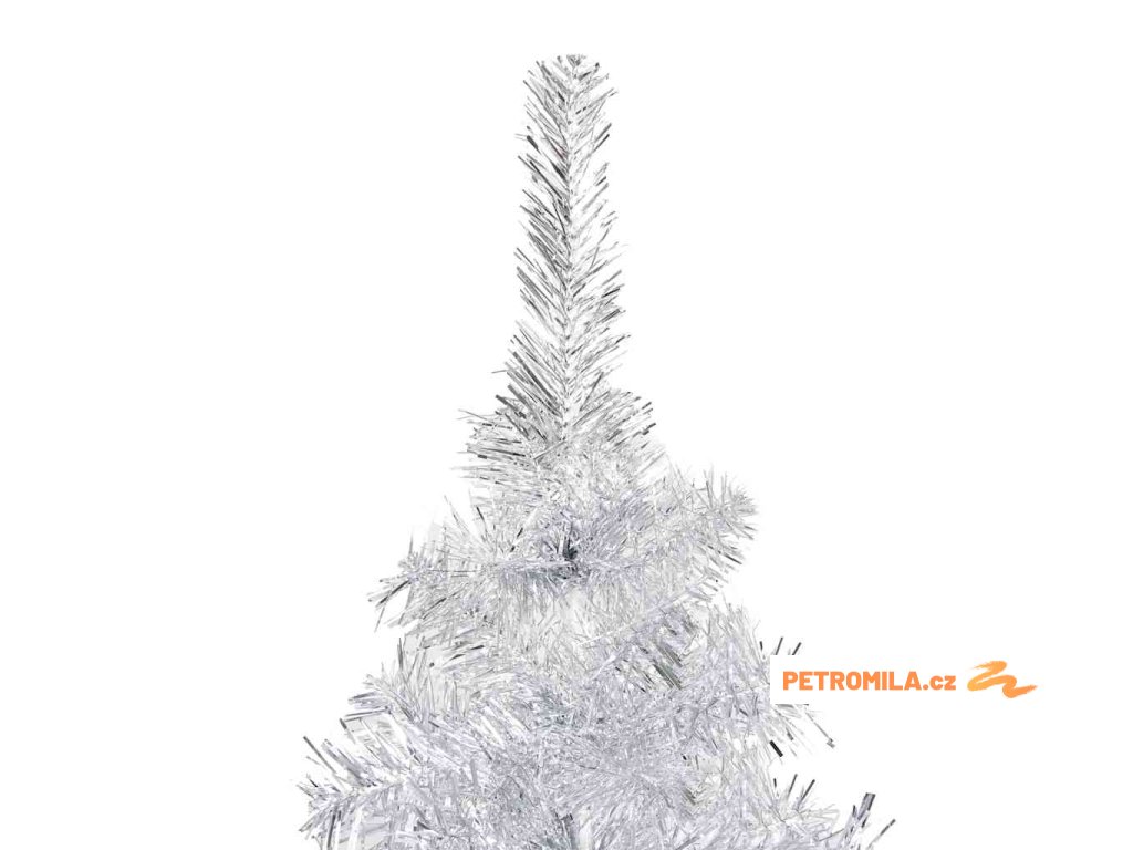 Umělý vánoční stromek s LED a sadou koulí stříbrný 150 cm PET