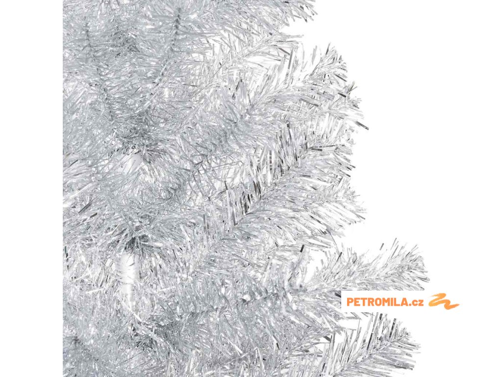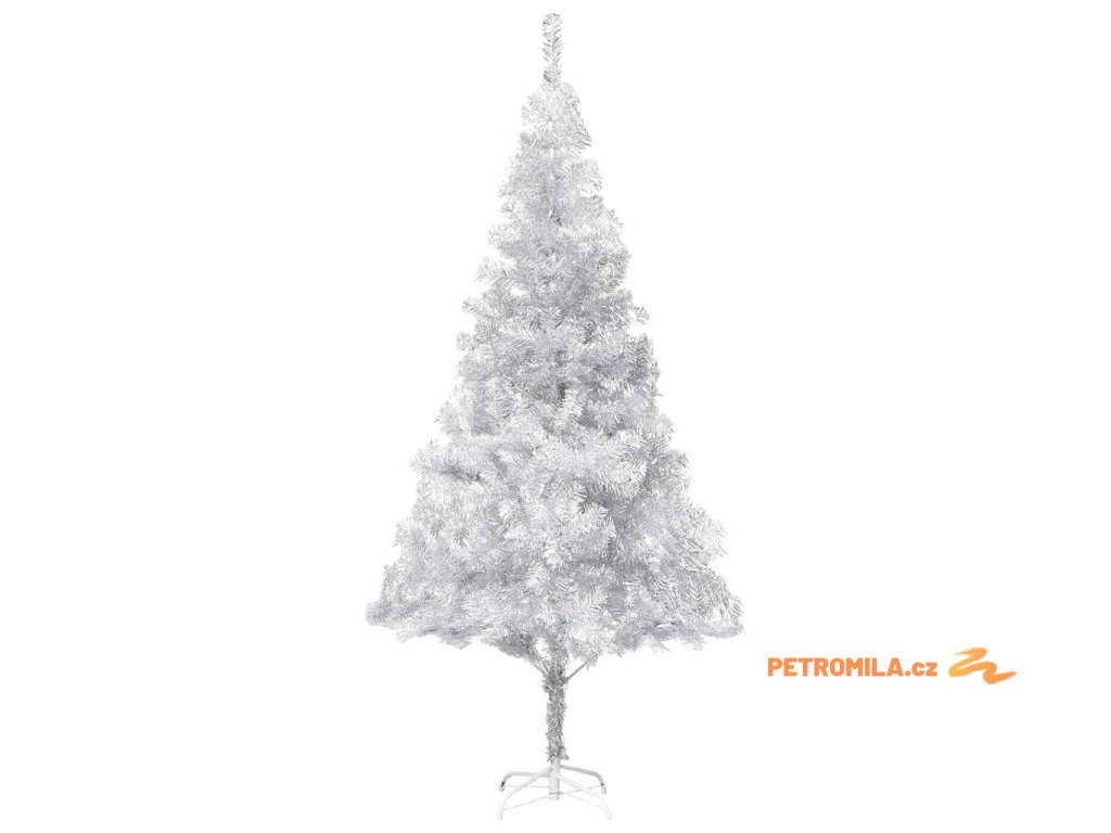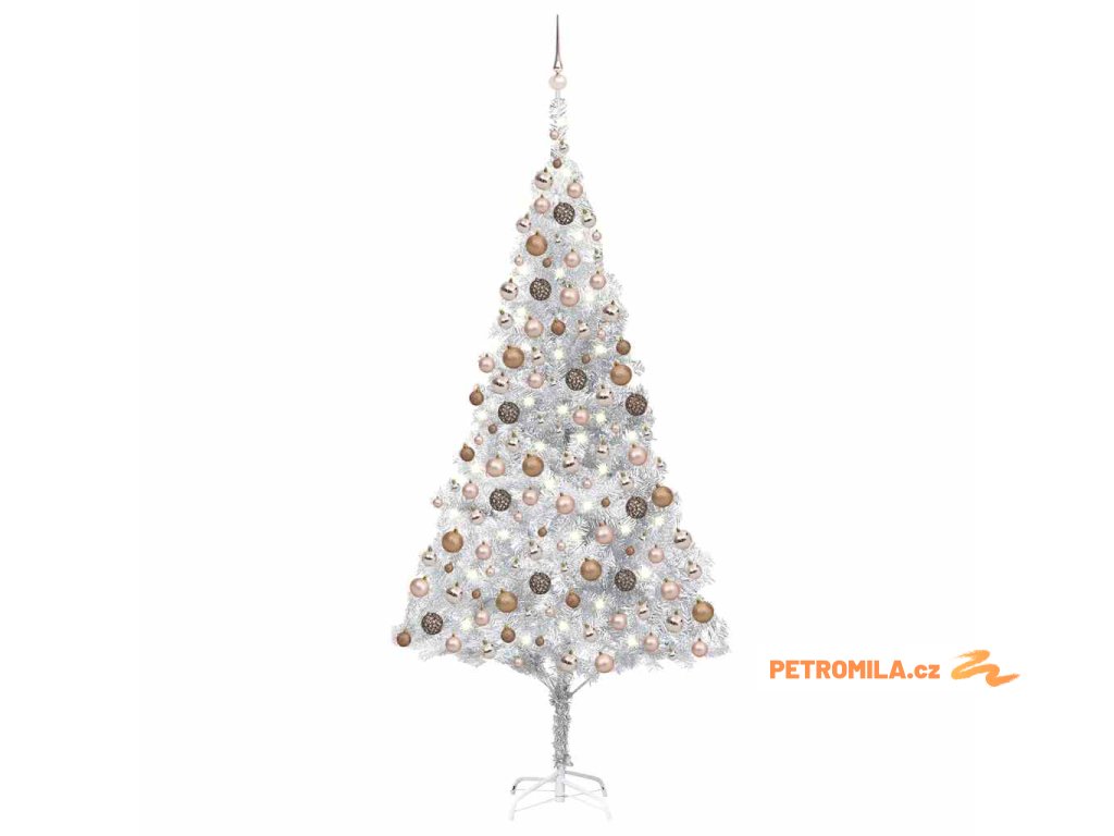 Umělý vánoční stromek s LED a sadou koulí stříbrný 240 cm PET