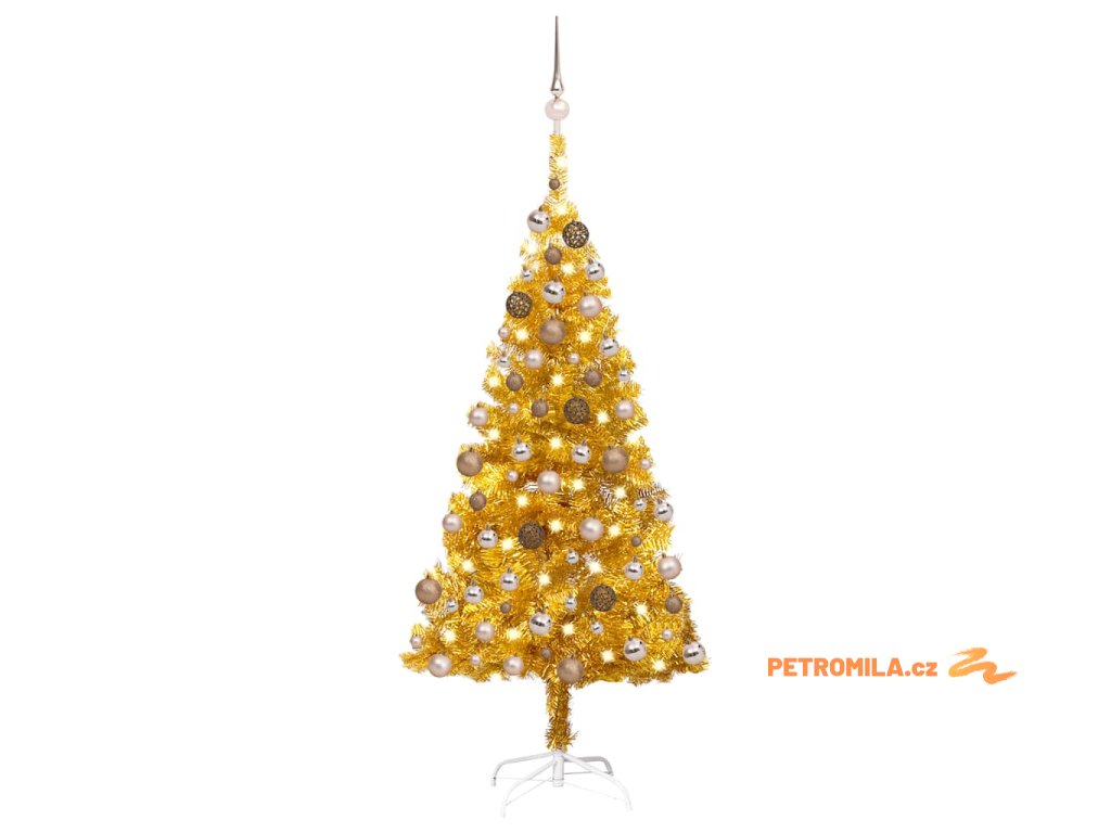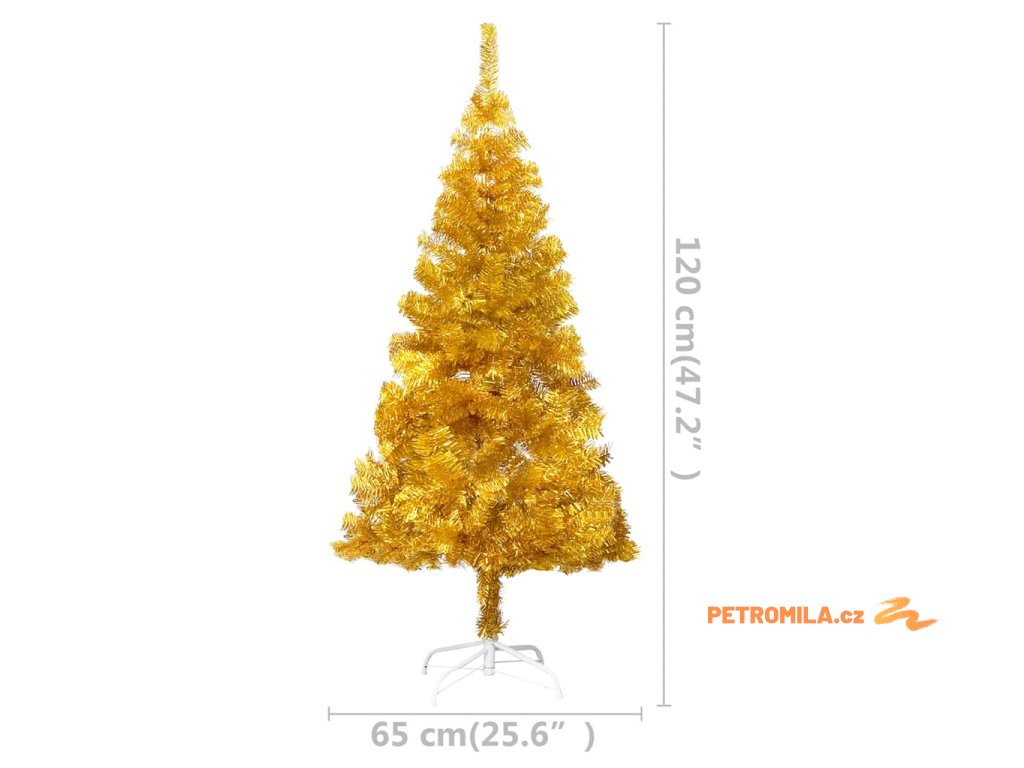 Umělý vánoční stromek s LED a sadou koulí zlatý 120 cm PET