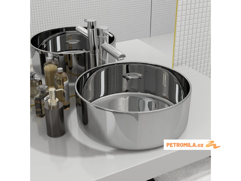 Umyvadlo 40 x 15 cm keramika stříbrné