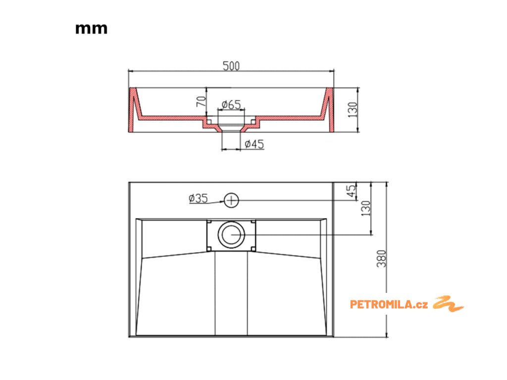 - Průměr odtokového otvoru: 4,5 cm