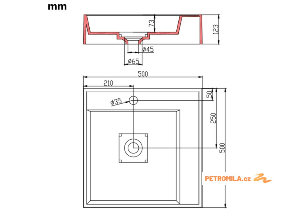 - Průměr odtokového otvoru: 4,5 cm