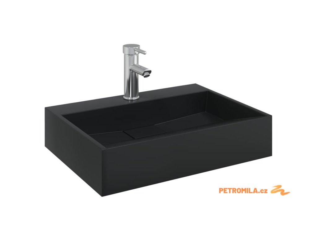 Umyvadlo 50x38x11 cm minerální/mramorový kompozit černé