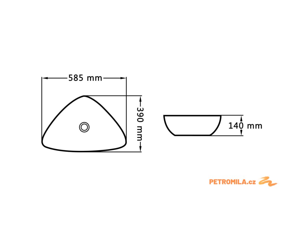 Toto umyvadlo v trojúhelníkovém tvaru je vyrobeno z keramiky a představuje stylový a nadčasový doplněk do každé koupelny, umývárny, šatny nebo na toalety.