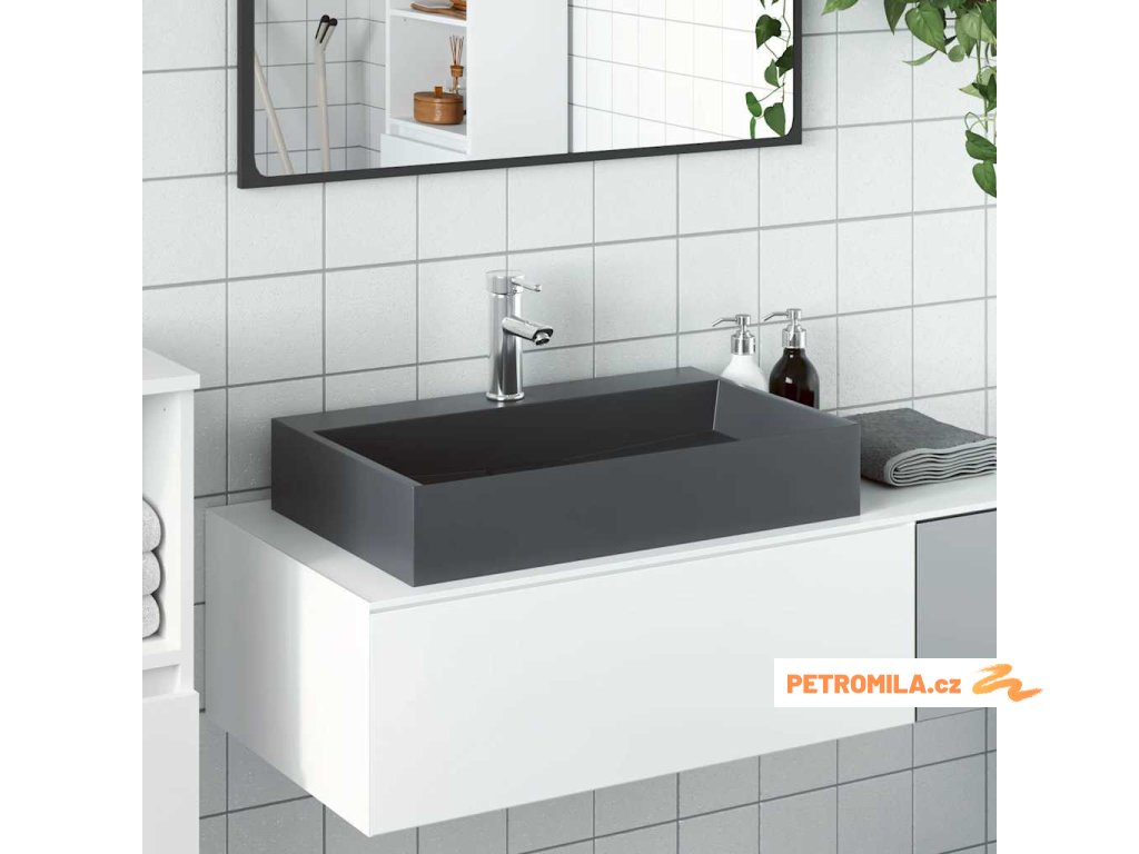 Umyvadlo 60x38x11 cm minerální/mramorový kompozit antracitové