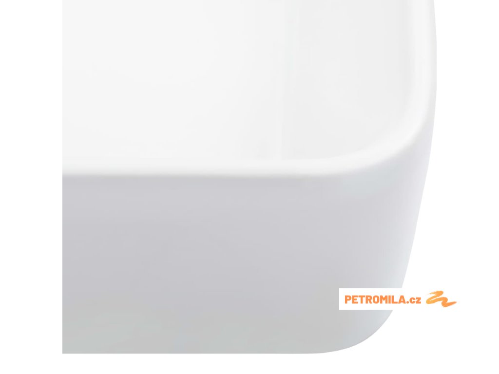 Toto obdélníkové umyvadlo je vyrobeno z keramiky a představuje stylový a nadčasový doplněk do každé koupelny, umývárny, šatny nebo na toalety.
