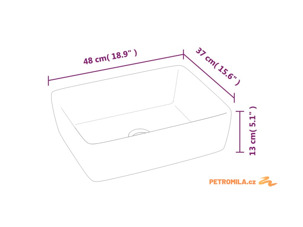Toto obdélníkové umyvadlo je vyrobené z keramiky a bude elegantním a nadčasovým doplňkem každé koupelny či toalety.