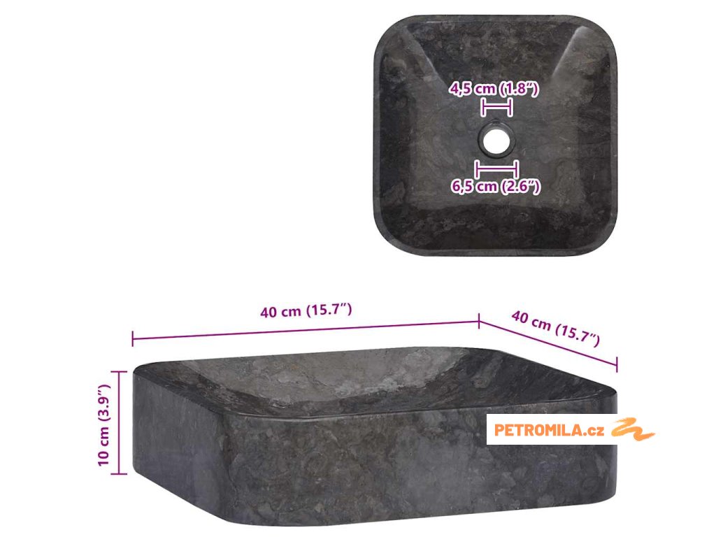Umyvadlo černé 40 x 40 x 10 cm mramor