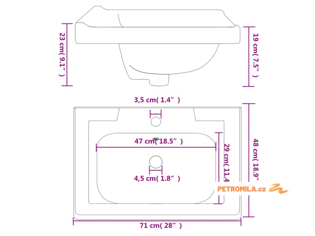 Umyvadlo do koupelny bílé 71 x 48 x 23 cm obdélníkové keramika