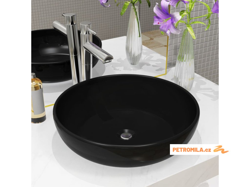 Umyvadlo keramické kulaté černé 42x12 cm