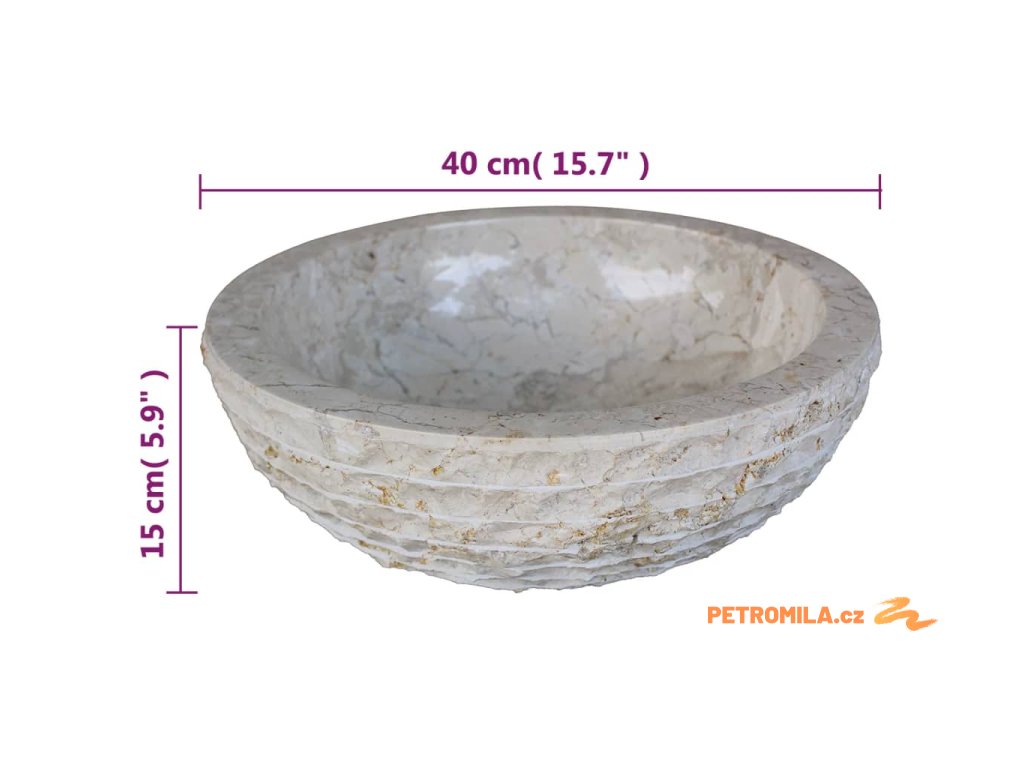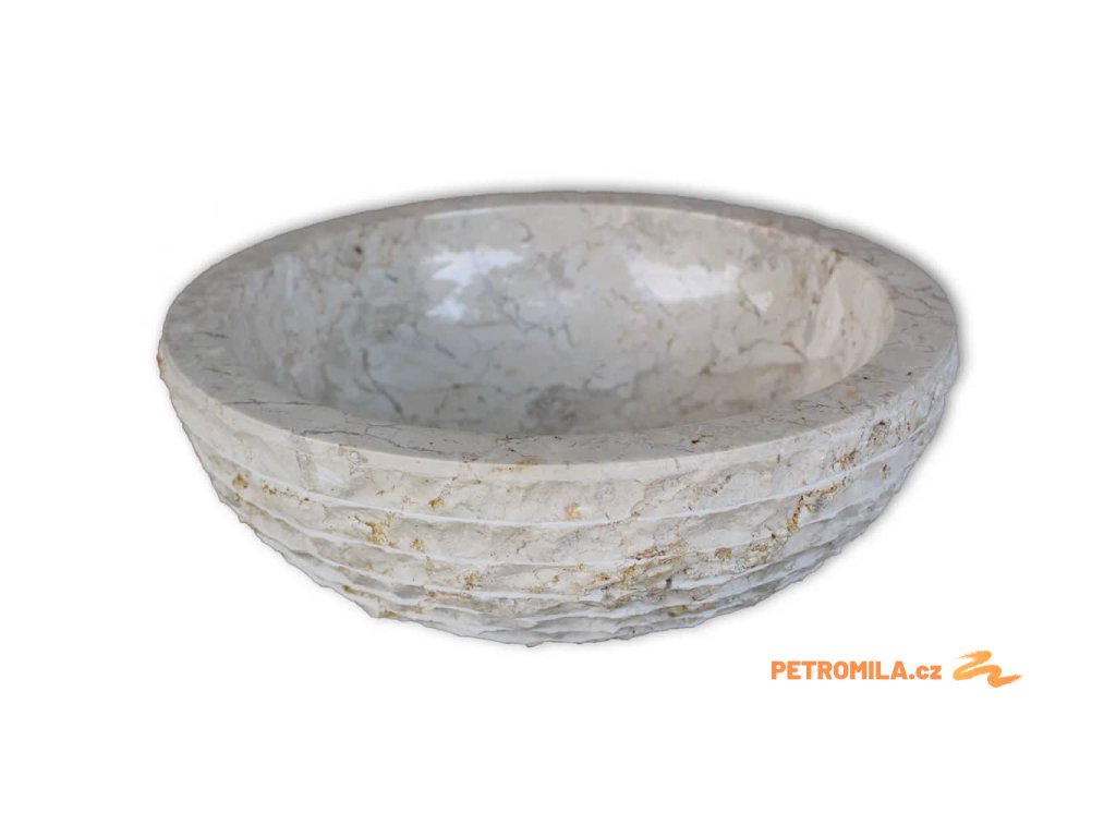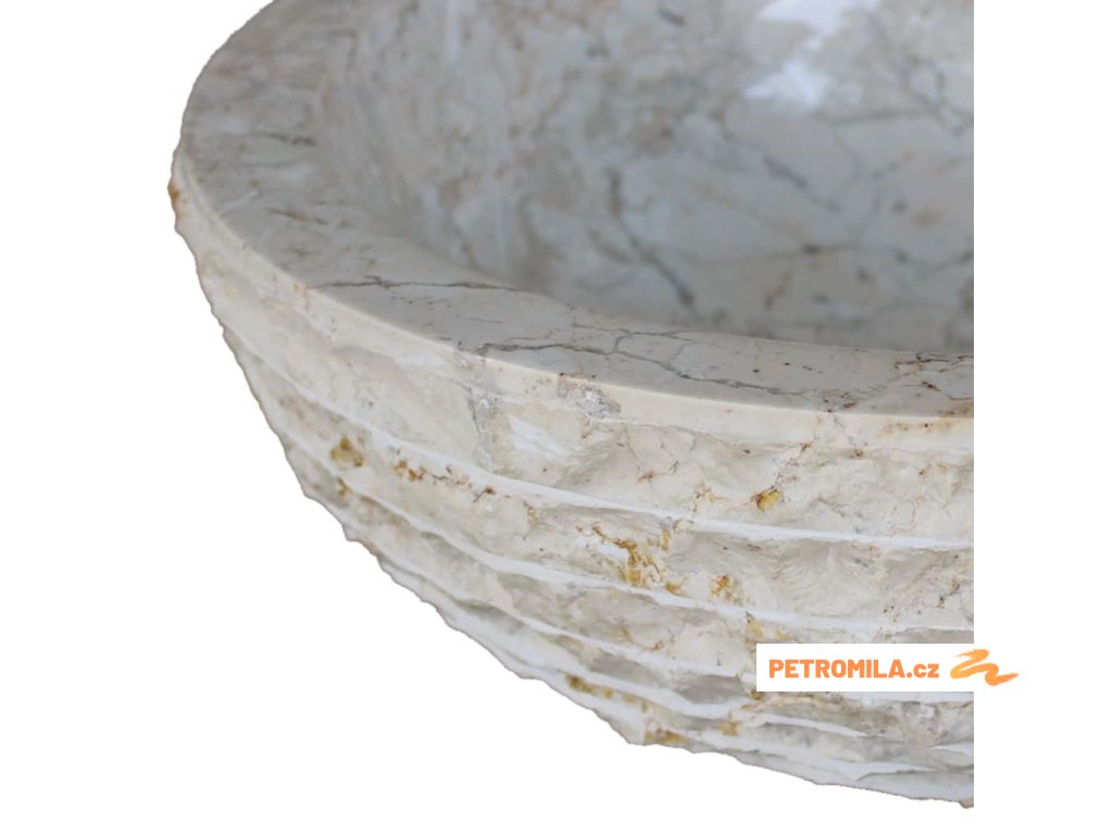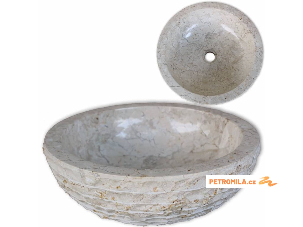 Toto umělecky zpracované umyvadlo z přírodního kamene není jen záležitostí pro každodenní použití, ale také zkrášlením vašeho bydlení. Hrubě opracovaný vnější povrch s vytesanými reliéfními pruhy dodává umyvadlu rustikální vzhled. Kulatý tvar umyvadla působí na druhou stranu elegantně a jemně. Hladký vnitřek se zajímavě doplňuje s hrubým, ale přitom elegantním vnějším povrchem. A je to právě tento vyvážený soulad, který dělá z umyvadla jedinečný a umělecký kousek. Hladce vyleštěný vnitřní povrch se opravdu snadno čistí.