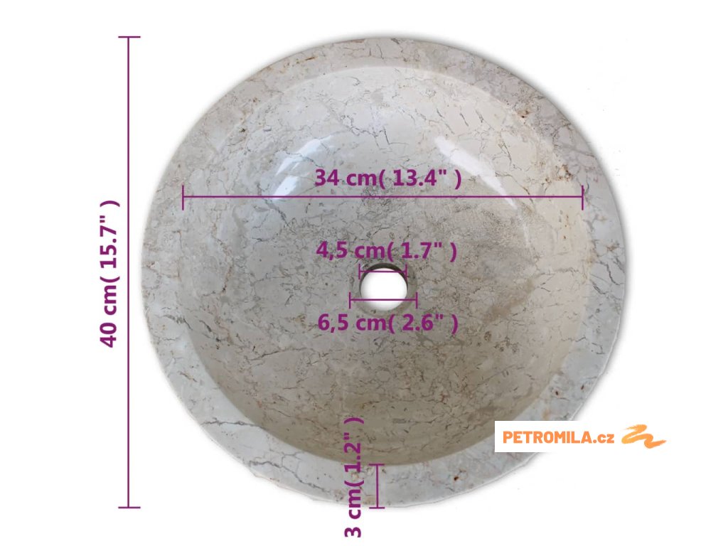 Toto kulaté umyvadlo, vyrobené z přírodního mramoru, bude stylovým doplňkem do každé koupelny nebo na toaletu.