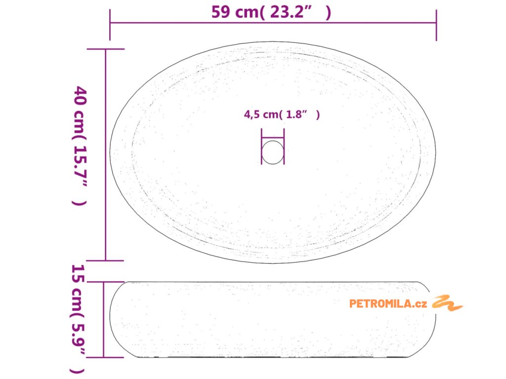 Umyvadlo na desku hnědé a modré oválné 59 x 40 x 15 cm keramika
