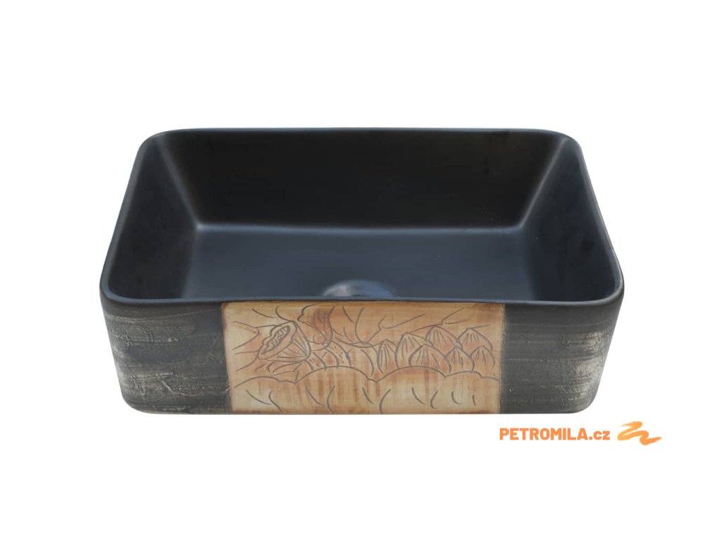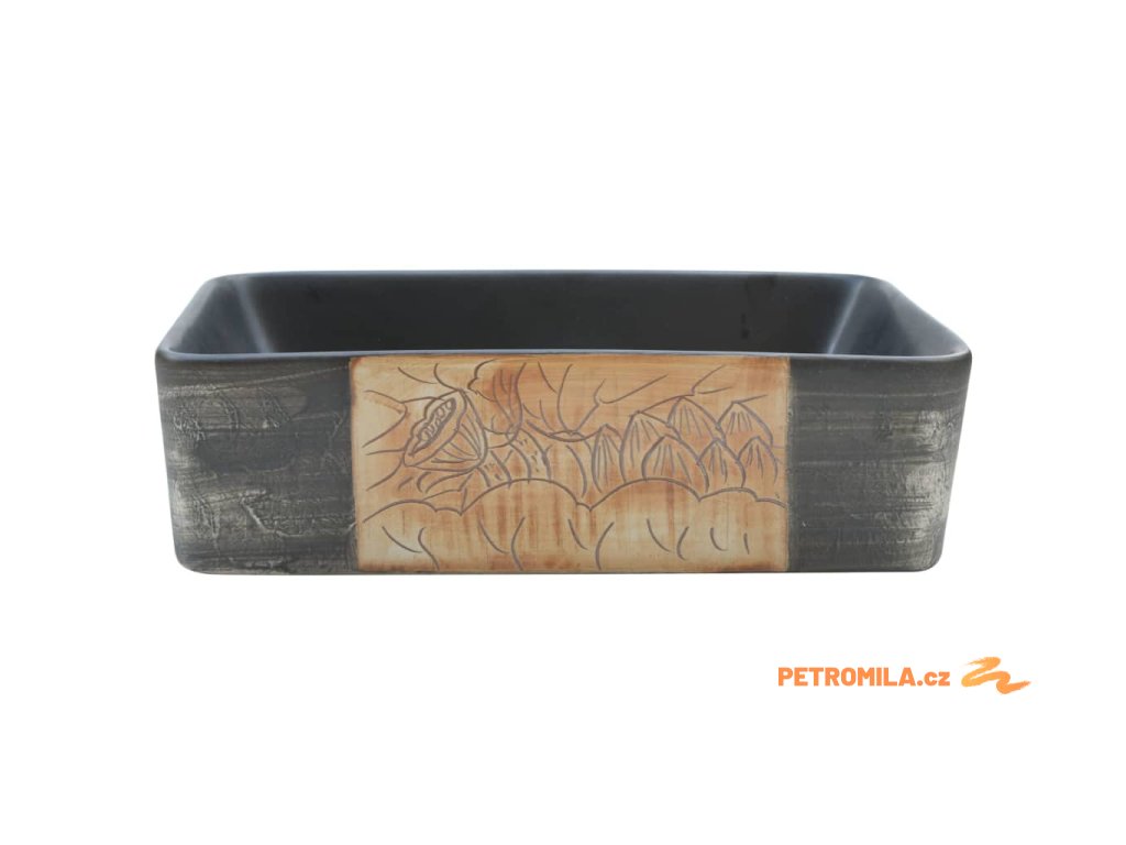 Umyvadlo na desku černé a hnědé obdélník 46x35,5x13 cm keramika