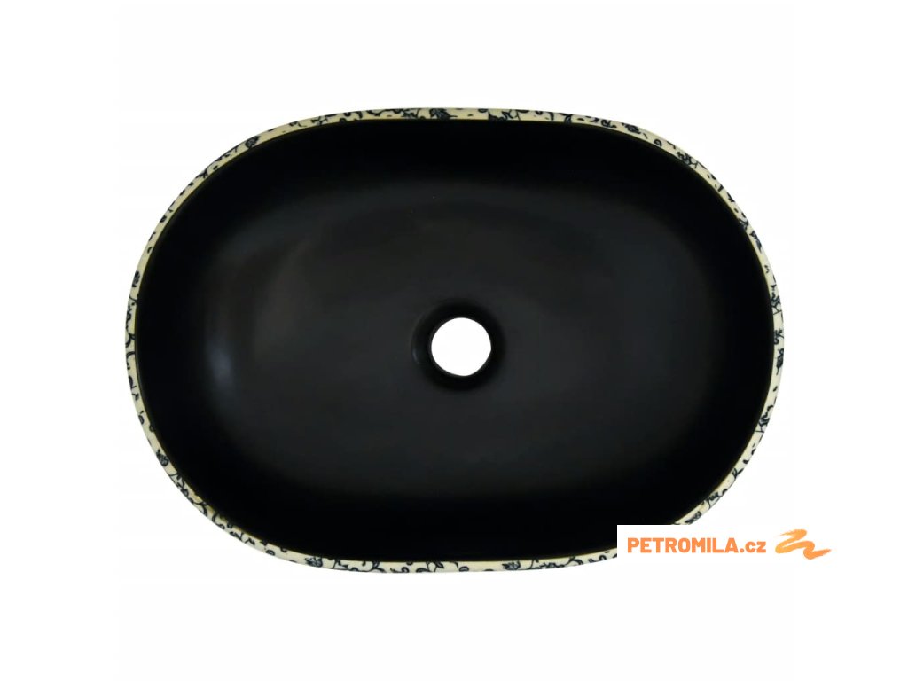 Umyvadlo na desku černé a modré oválné 47 x 33 x 13 cm keramika