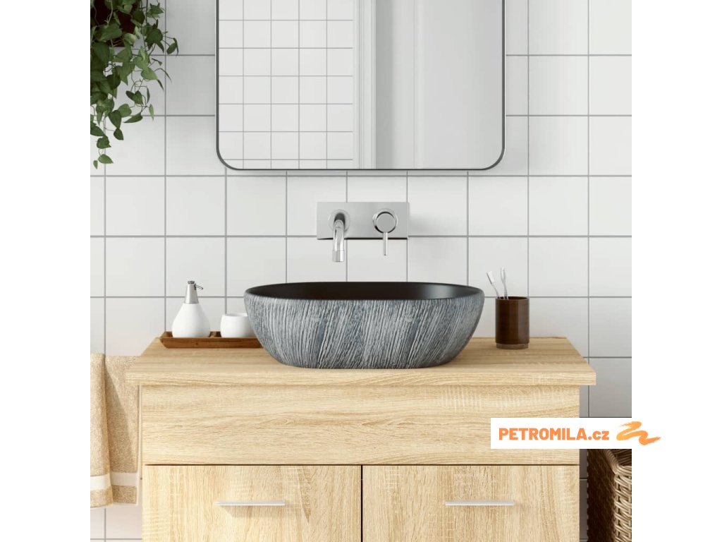 Umyvadlo na desku černé a šedé oválné 47 x 33 x 13 cm keramika