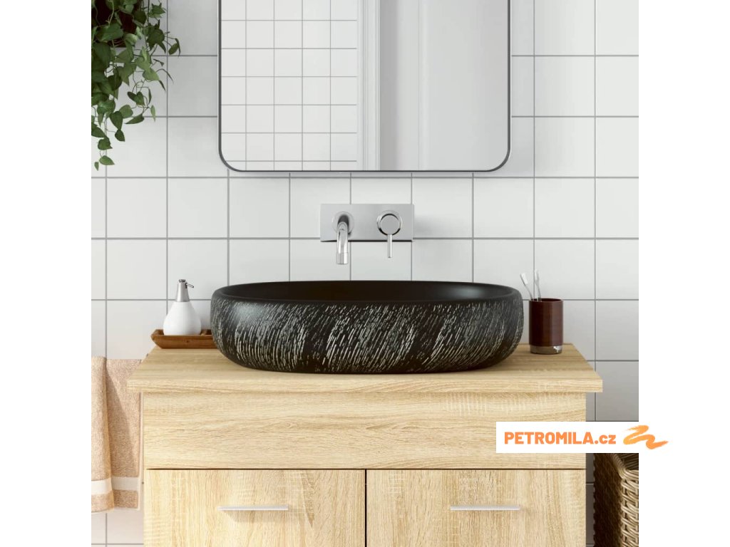 Umyvadlo na desku černé oválné 59 x 40 x 14 cm keramika